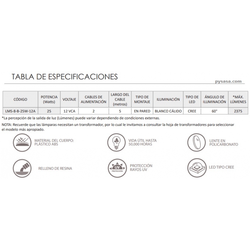 Voltage: 12VCA (Volts Corriente Alterna)
