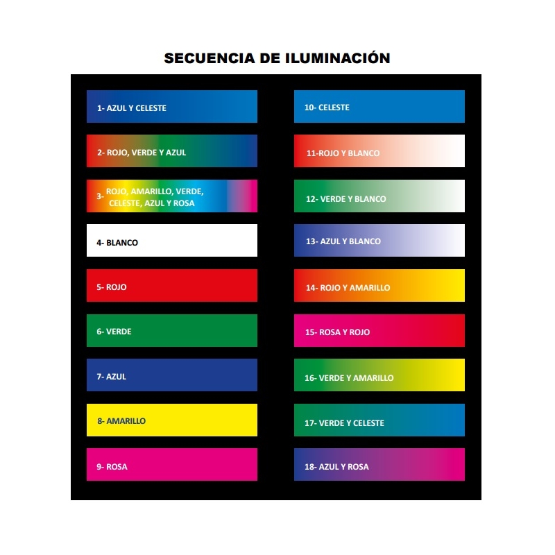 • Las lámparas de LED multicolor marca Panda, ofrecen una amplia gama de colores, hasta 18 alternativas de color (7 colores sólidos y 11 espectáculos de cambio de color)