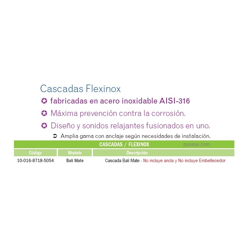 Esta cascada Requiere ANCLA y se vende por separado, ver código 10-316-8718-5054