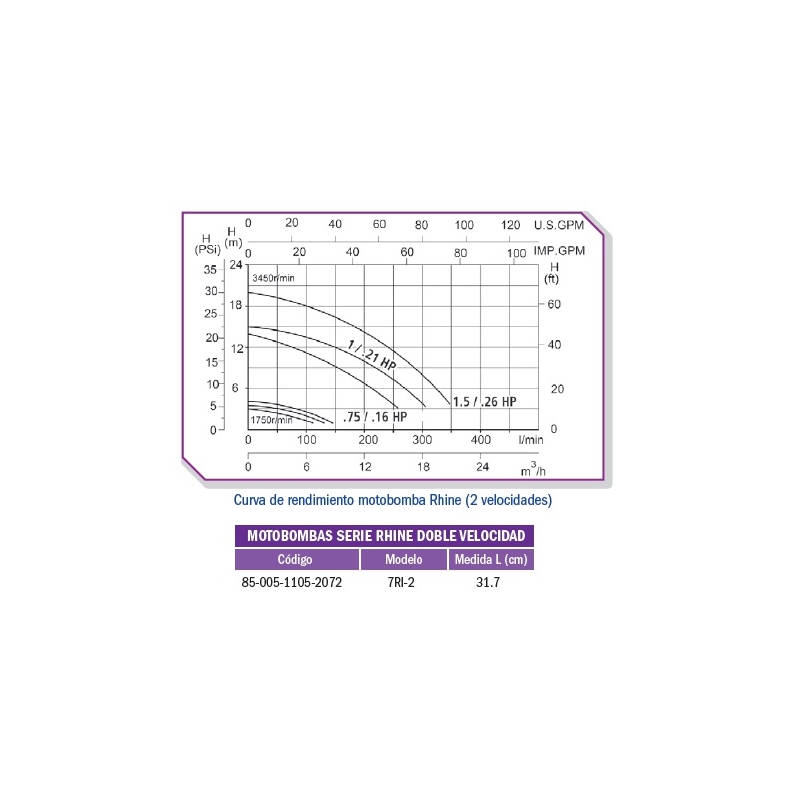 Motobomba RHINE DOBLE VELOCIDAD, 3/4 HP, Modelo 7RI-2 - Inter Water