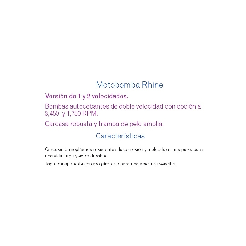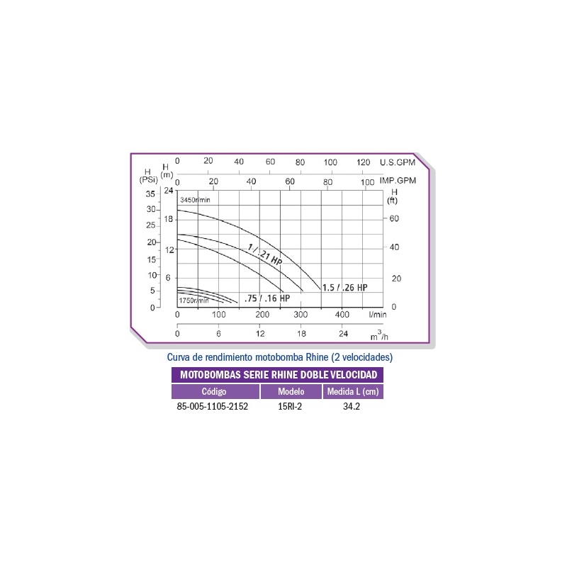 Bomba autocebantes de doble velocidad con opción a 3,450 y 1,750 RPM.