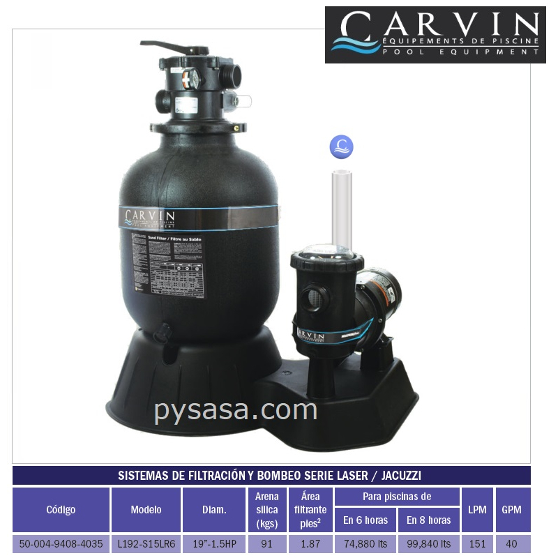Sistema de filtrado Laser. 19" y Motobomba 1 1/2HP. Carvin L192-S15LR6