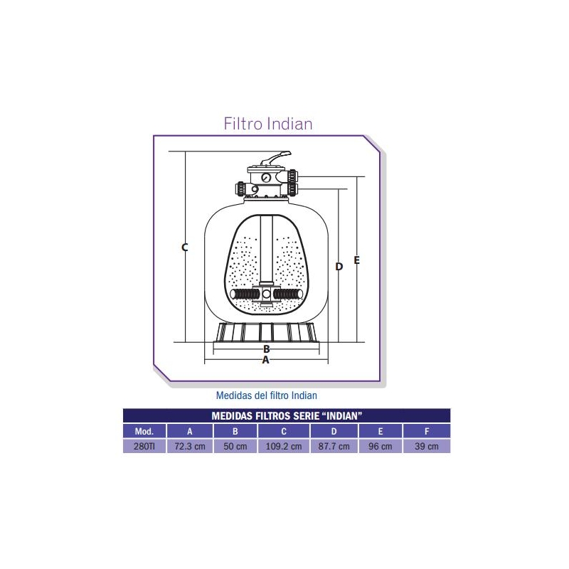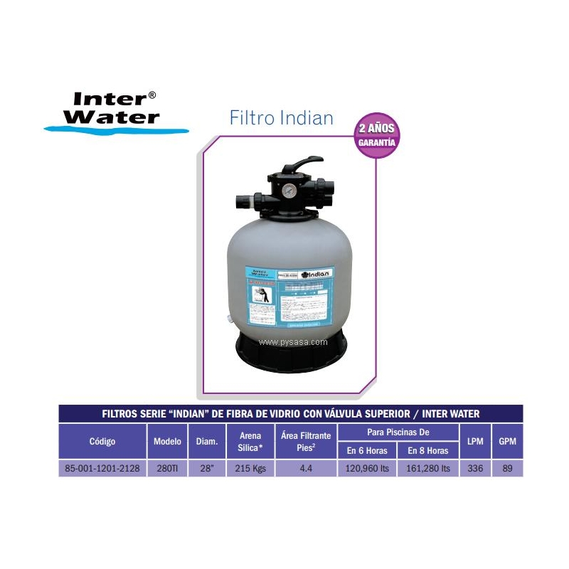 Filtro Indian Válvula Superior. 28", Modelo 280TI. Inter Water