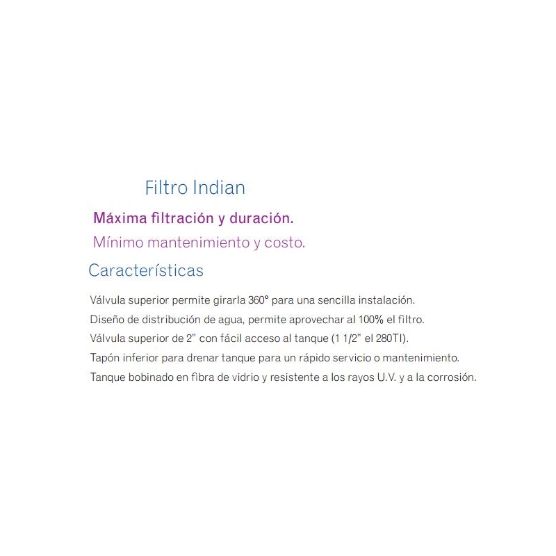 Comentarios y calificaciones: Filtro Indian Válvula Superior. 28", Modelo 280TI. Inter Water