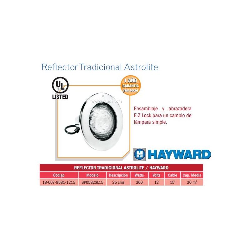 Reflector Tradicional Astrolite . Modelo. SP0582SL15. HAYWARD
