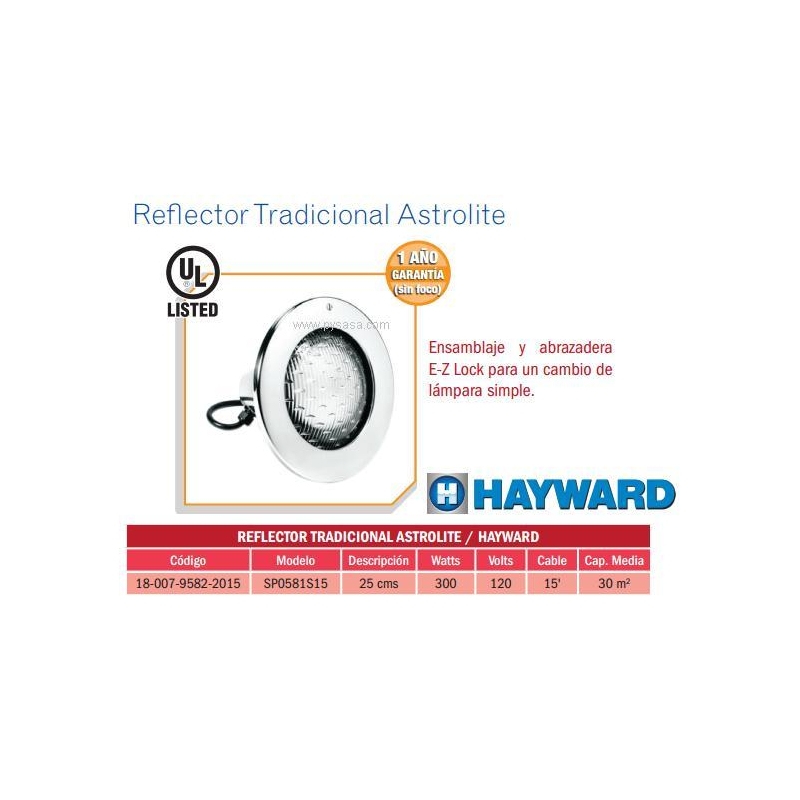 Reflector Tradicional Astrolite . Modelo. SP0581S15. HAYWARD