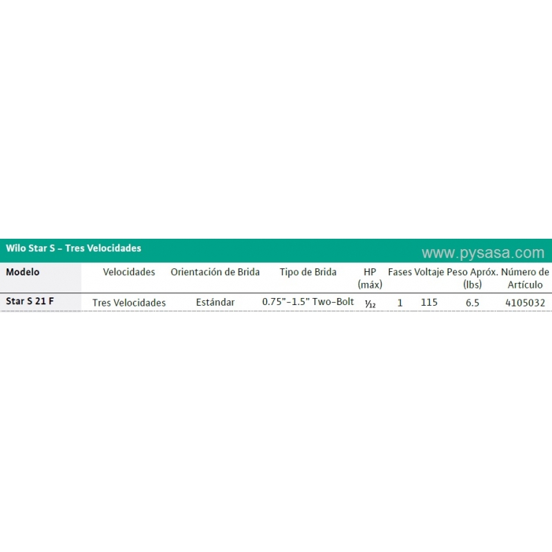 Circulador de Rotor Húmedo Wilo Star S 21 F, 1/12H