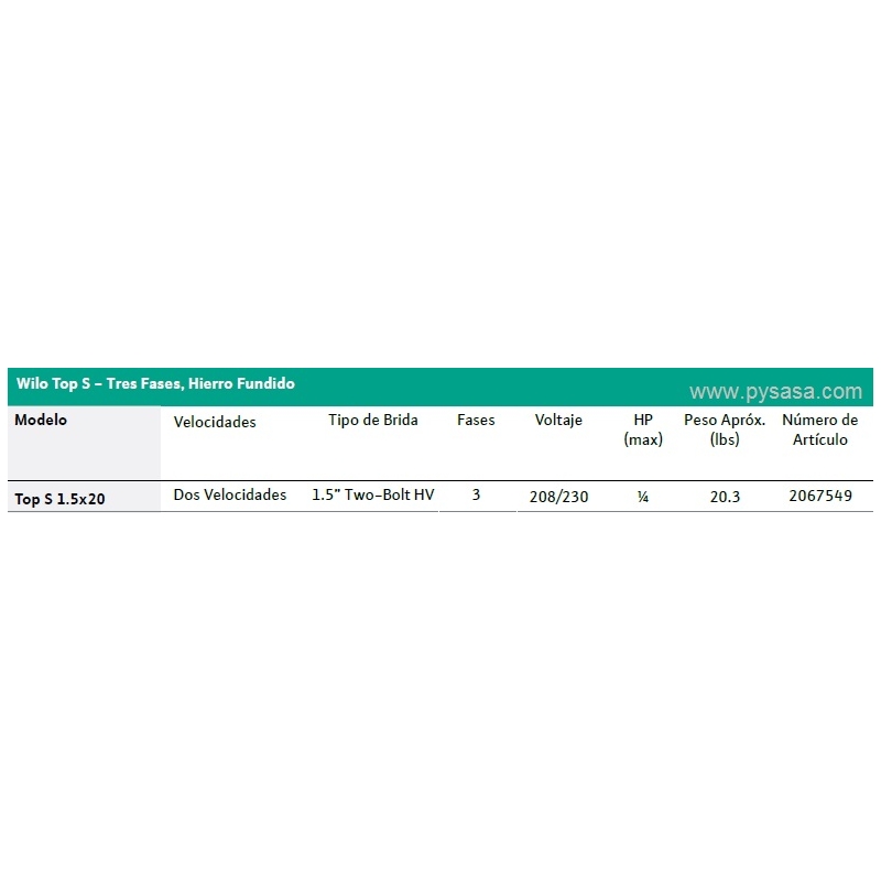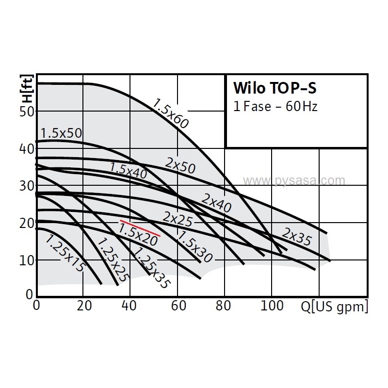 20 = Carga máxima que podrá aplicar la bomba expresada en Pies de columna de agua (Ft)