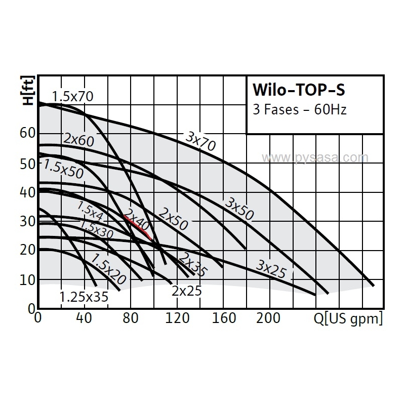 40 = Carga máxima que podrá aplicar la bomba expresada en Pies de columna de agua (Ft)