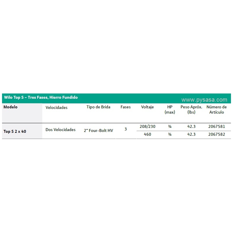 Circulador de Rotor Húmedo Dos Velocidaes Wilo Top S 2 x 40, 3/4 HP, 3 Fases