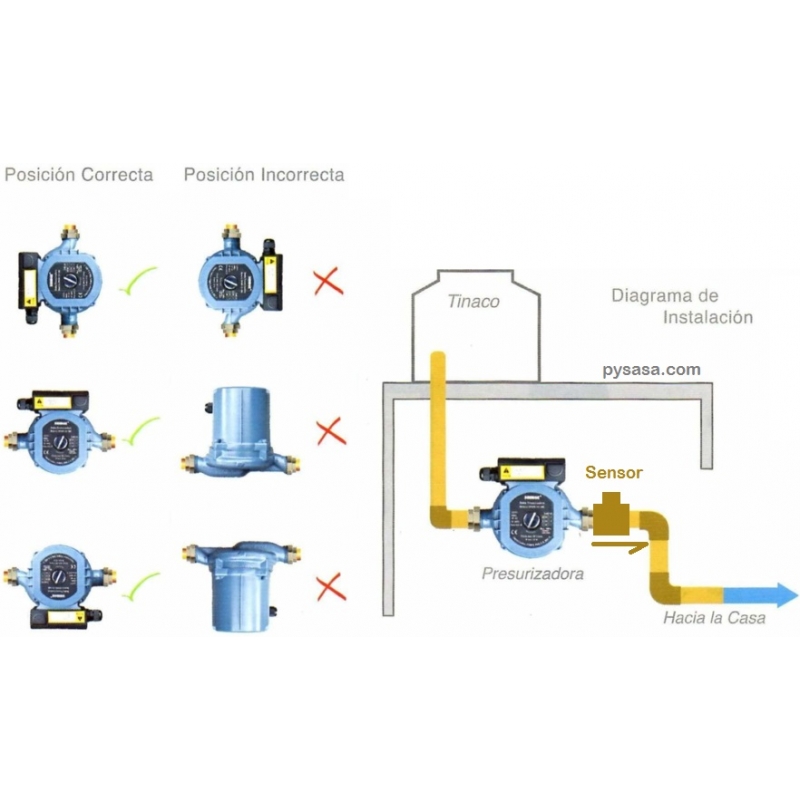 Bomba presurizadora para incrementar la presión del agua a la salida del Tinaco.