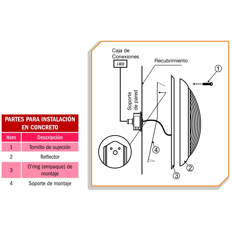 Reflector para montaje en pared, no requiere Nicho para su instalación.