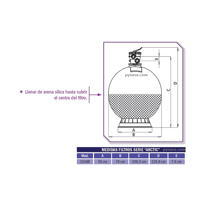 Filtro ARTIC de Plástico de 31" con Válvula Superior, Modelo 310AR