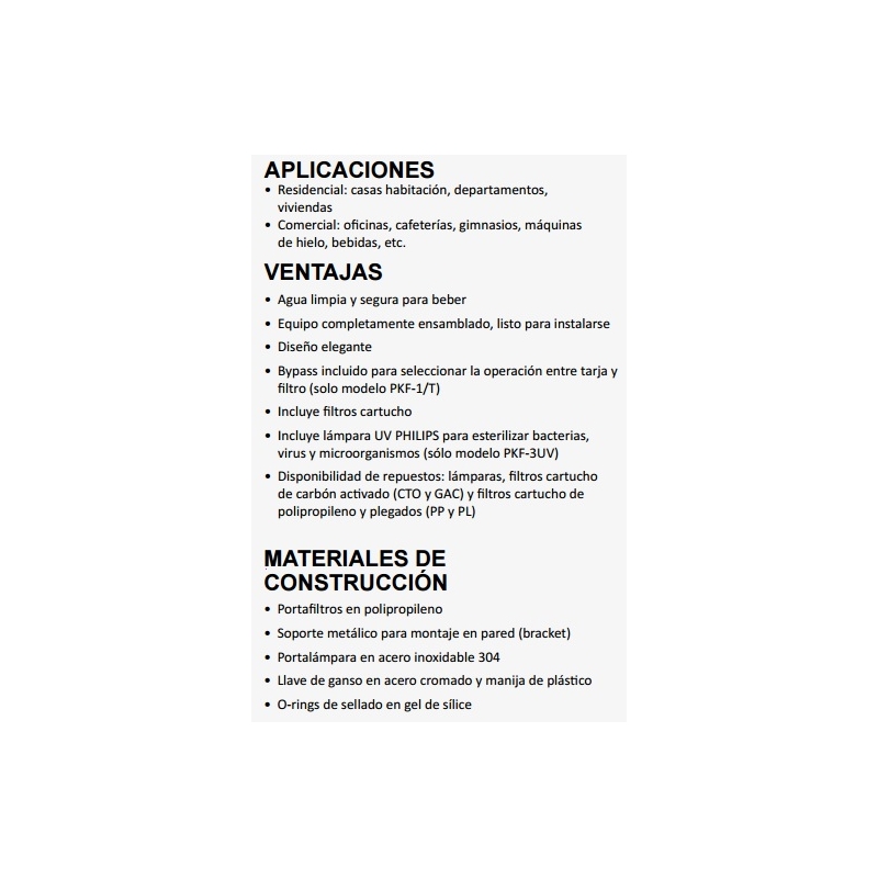 Sistema de Filtración básica Modelo: PKF-3UV