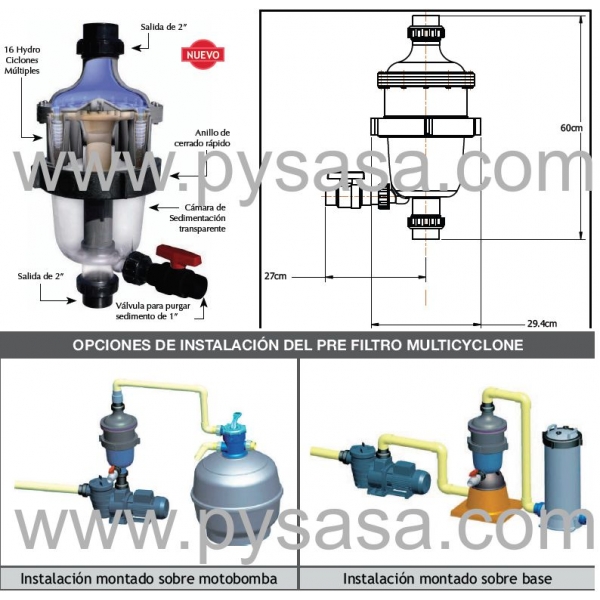 Nota: Este sistema está diseñado para retirar partículas más pesadas que el Agua, para que la acción centrífuga tenga efecto en las partículas.