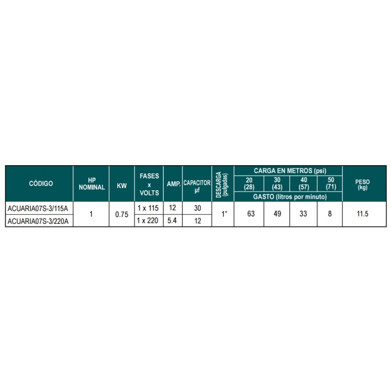 Motobomba Sumergible Marca ESPA Serie Aquaria, 1Hp, 115Volts