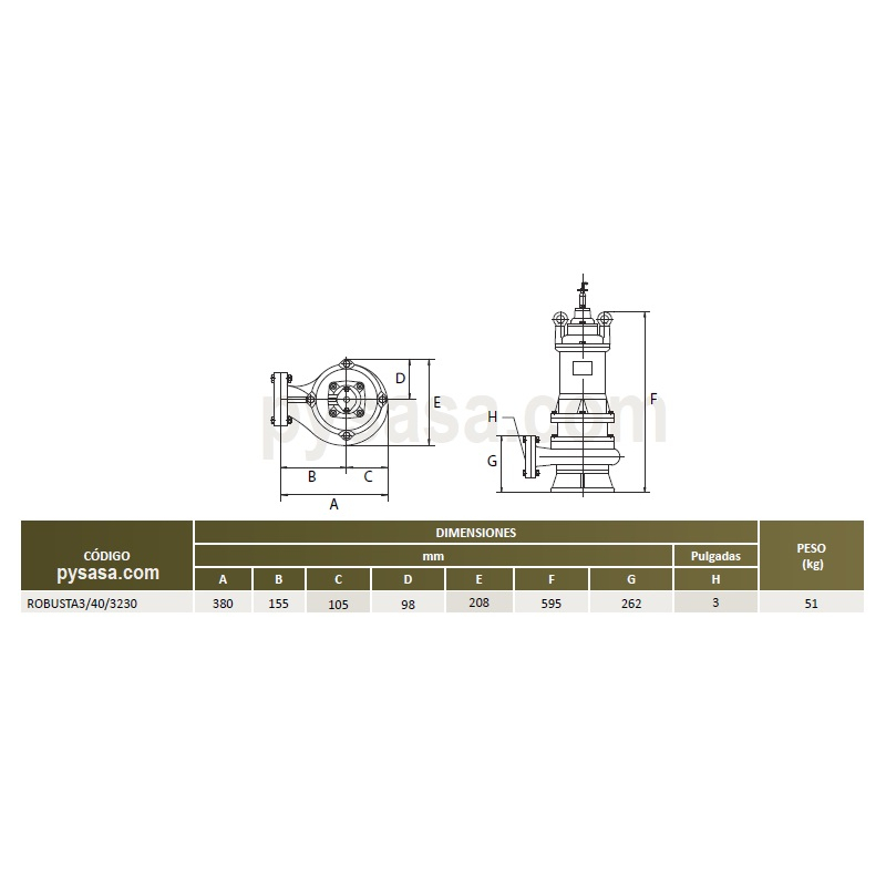 Motobomba Sumergible marca Altamira serie ROBUSTA3/40/3230, 4Hp, 3 Fases, 230VoltS