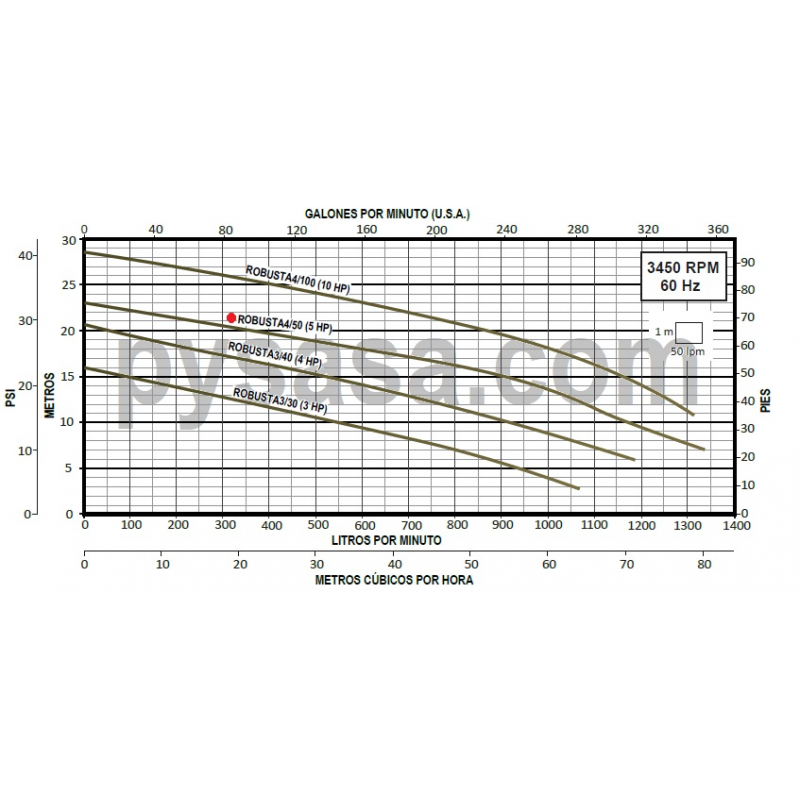 Para solicitar una bomba a 460 Volts, 3 Fases, solicite el código ROBUSTA4/50/3460
