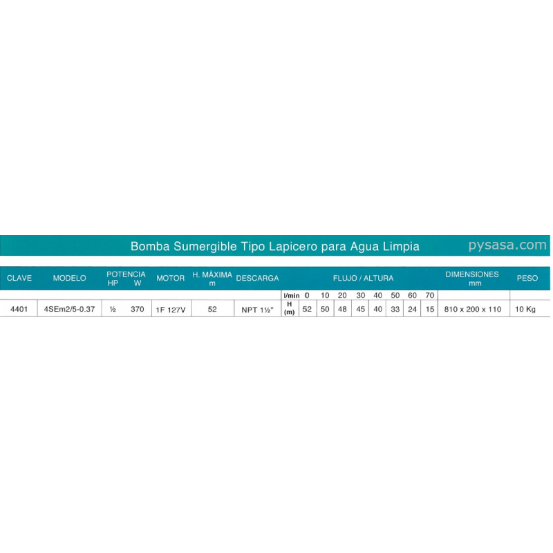 Motobomba sumergible tipo Lapicero, para pozo profundo