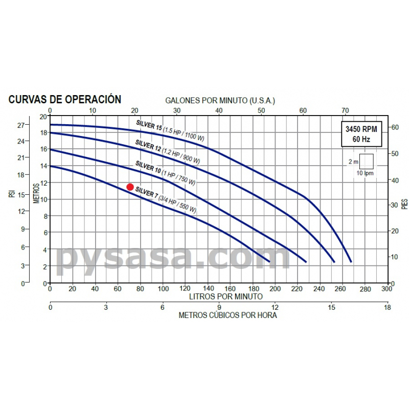 Potencia: 3/4 Hp (0.55 Kw)