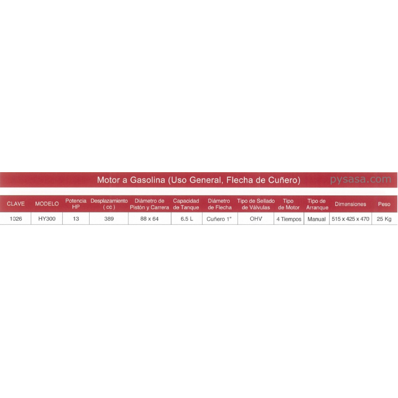 Motor a Gasolina (Uso general, Flecha de Cuñero) 13 HP, HY300