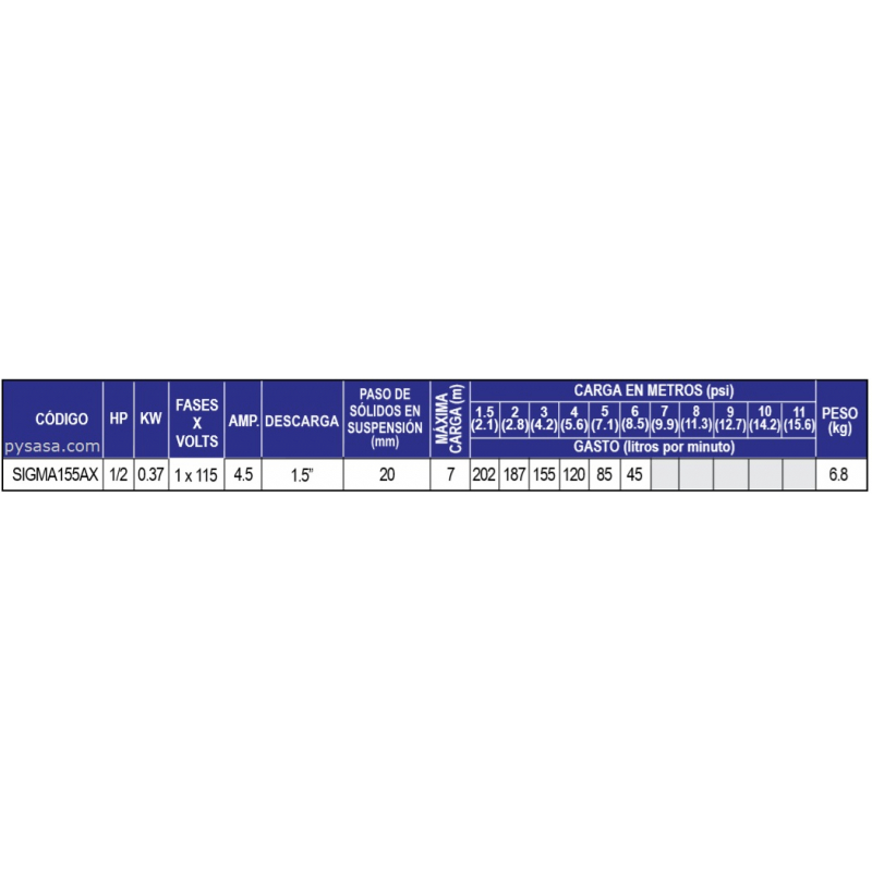 Diámetro de descarga: 1.5" Roscada (incluye adaptador para manguera)