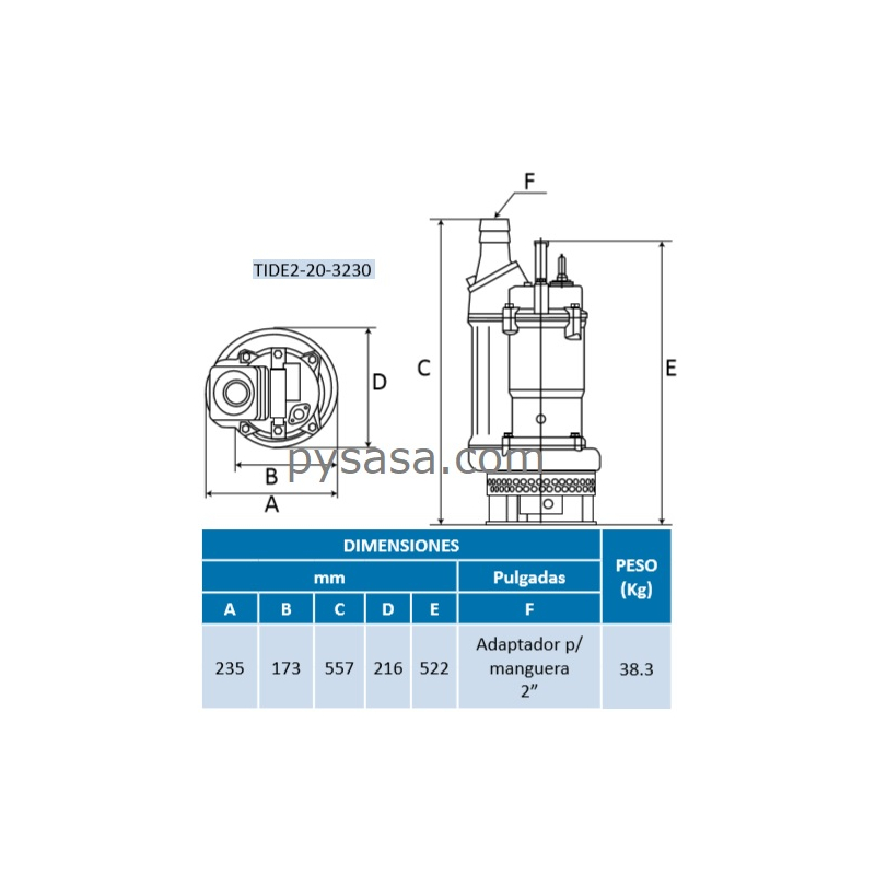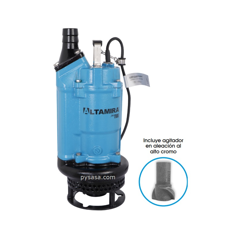 Motobomba sumergible marca ALTAMIRA, con agitador integrado. Bomba para USO CONTINUO CON LA BOMBA TOTALMETE SUMERGIDA.