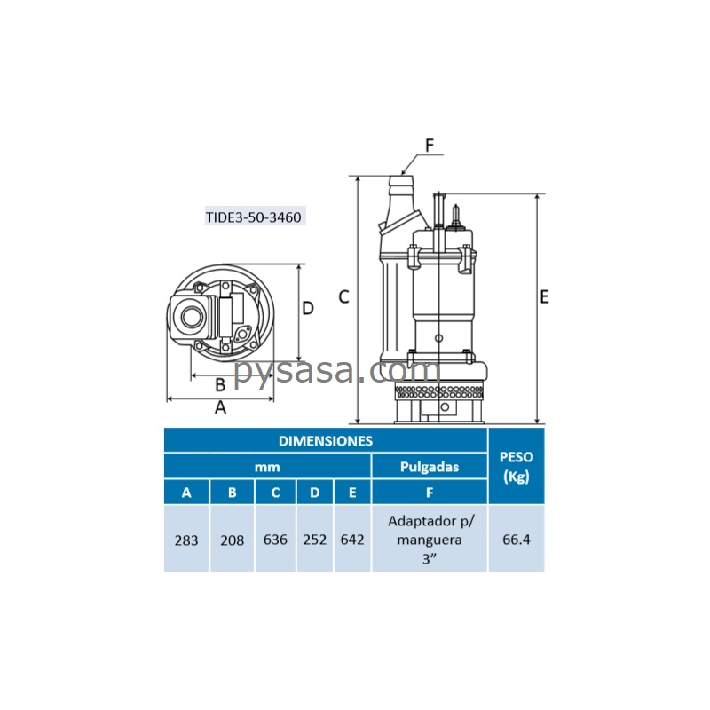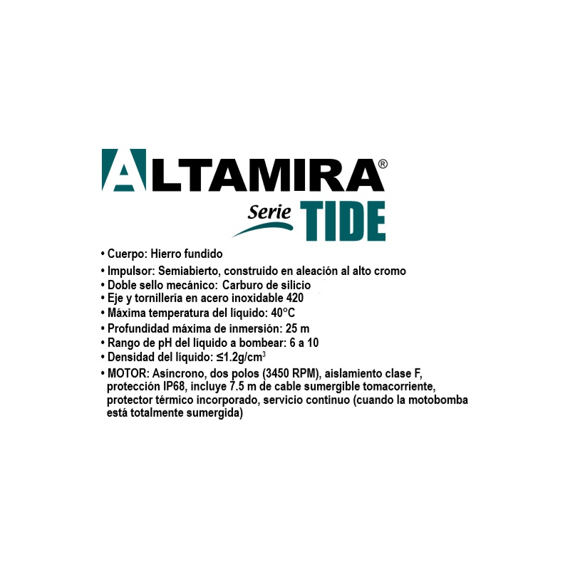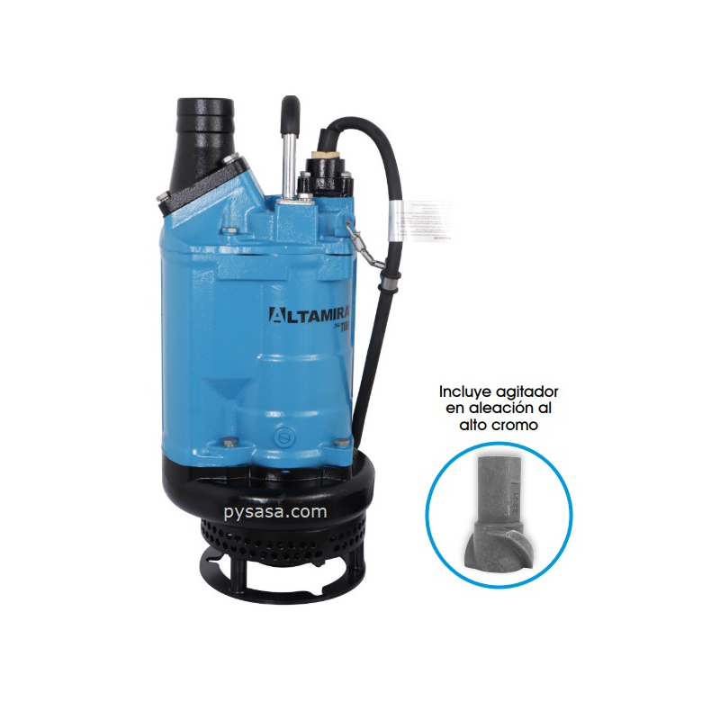 Motobomba sumergible marca ALTAMIRA, con agitador integrado. Bomba para USO CONTINUO CON LA BOMBA TOTALMETE SUMERGIDA.