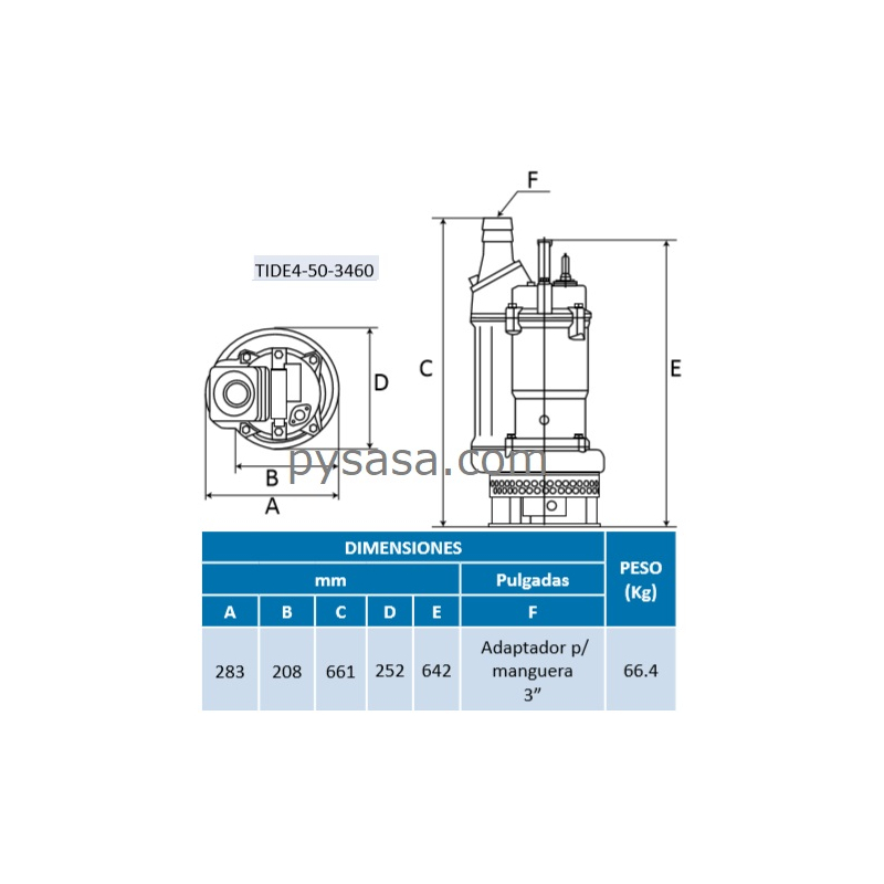 Motobomba sumergible  marca ALTAMIRA, con agitador integrado. Bomba para USO CONTINUO CON LA BOMBA TOTALMETE SUMERGIDA.