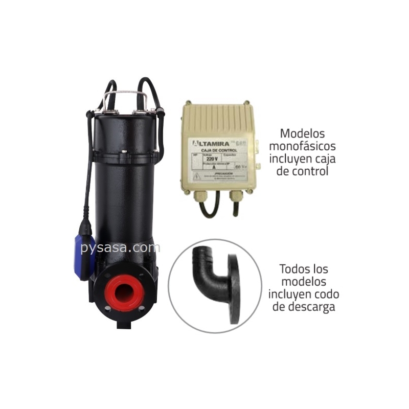 Motobomba sumergible ALTAMIRA GRD es una serie de motobombas trituradoras diseñadas para maximizar su funcionamiento ya que cuenta con un sistema de corte al alto cromo capaz de soportar grandes esfuerzos durante el bombeo de desechos y desperdicios en suspensión.