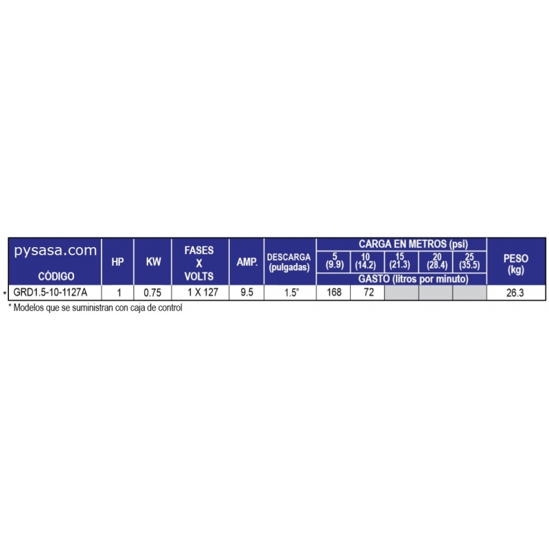 Voltaje de operación: 127Volts, 1 Fase