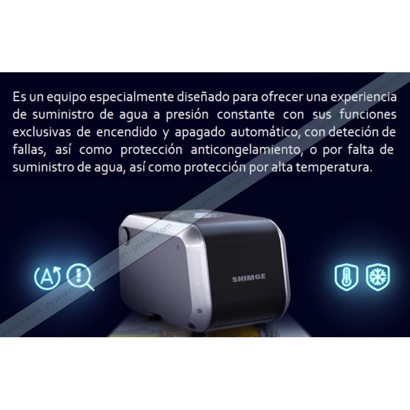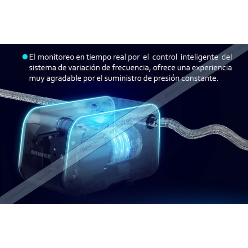 Sistema de presi贸n constante marca SHIMGE Modelo SHV1000 / CA1000, 1.6Hp, 1 Fase1 115/220VoltsSistema de presión constante complemtamente integrado, equipado con un potente motor de imanes permanentes, altamente silencioso. Cuenta con un sistema inteligente de variación de frecuencia e identificación de alimentación eléctrica, que puede ser 115 o 220 volts, monofásico.