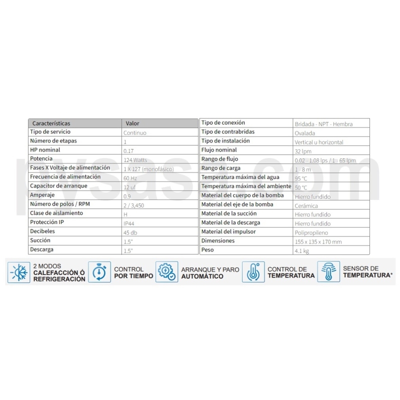 Comentarios y calificaciones: Motobomba circuladora de agua caliente marca AquaPak, 1/6Hp, 1 Fase, 127 Volts.