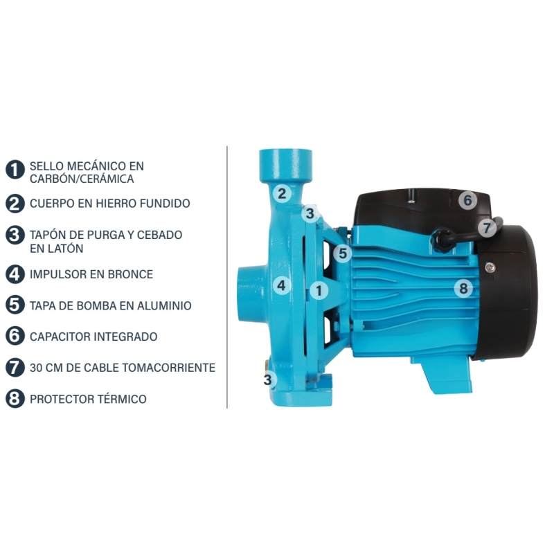 Las motobombas AQ-CFB de AquaPak, son una excelete bomba centrífuga con grandes prestaciones de servicio, todas con motor eléctrico de 1 fase a 127 Volts.