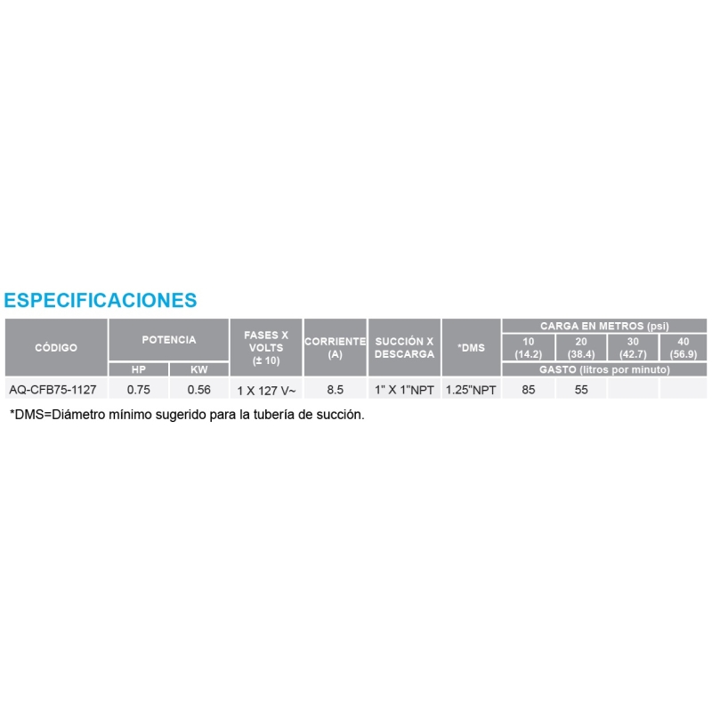 Conexión de succión: 1" NPT