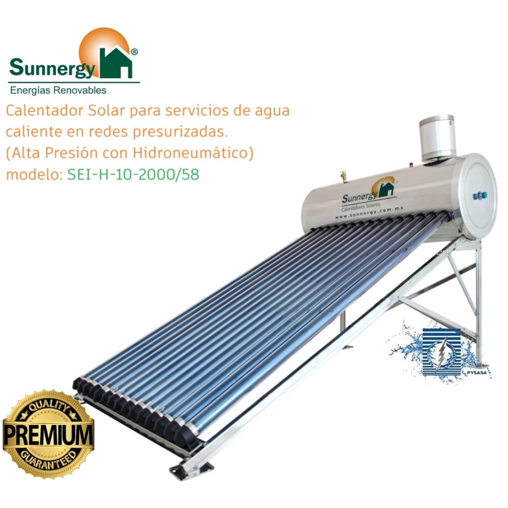 Calentador Solar para Servicios de Agua en Alta Presión (Hidroneumático) marca Sunnergy, 132 Litros Nominales