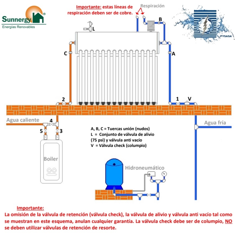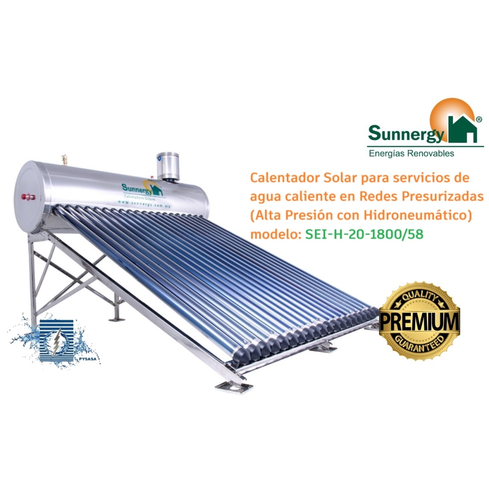 Calentador Solar para Servicios de Agua en Alta Presión (Hidroneumático) marca Sunnergy, 215 Litros Nominales