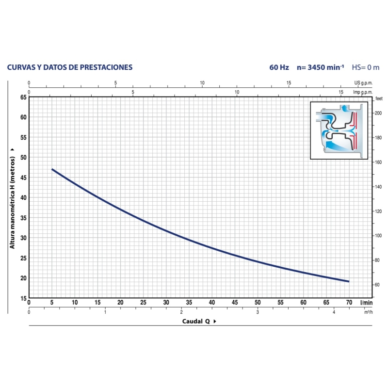 • Altura de aspiración manométrica hasta 9 m (HS)