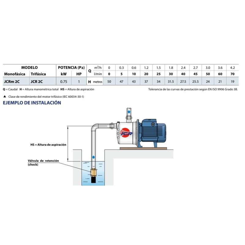 Las bombas autocebantes JCR han sido diseñadas para aspirar agua aún en presencia de gas mezclado con el líquido bombeado.