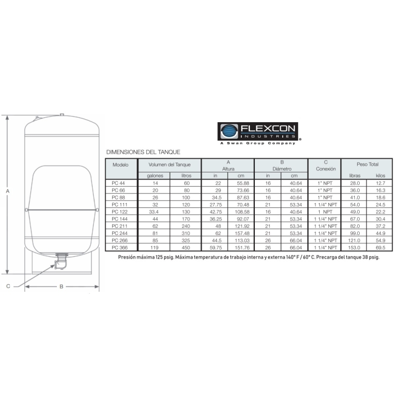 • Capacidad m谩xima: 44 Galones / 170 litros