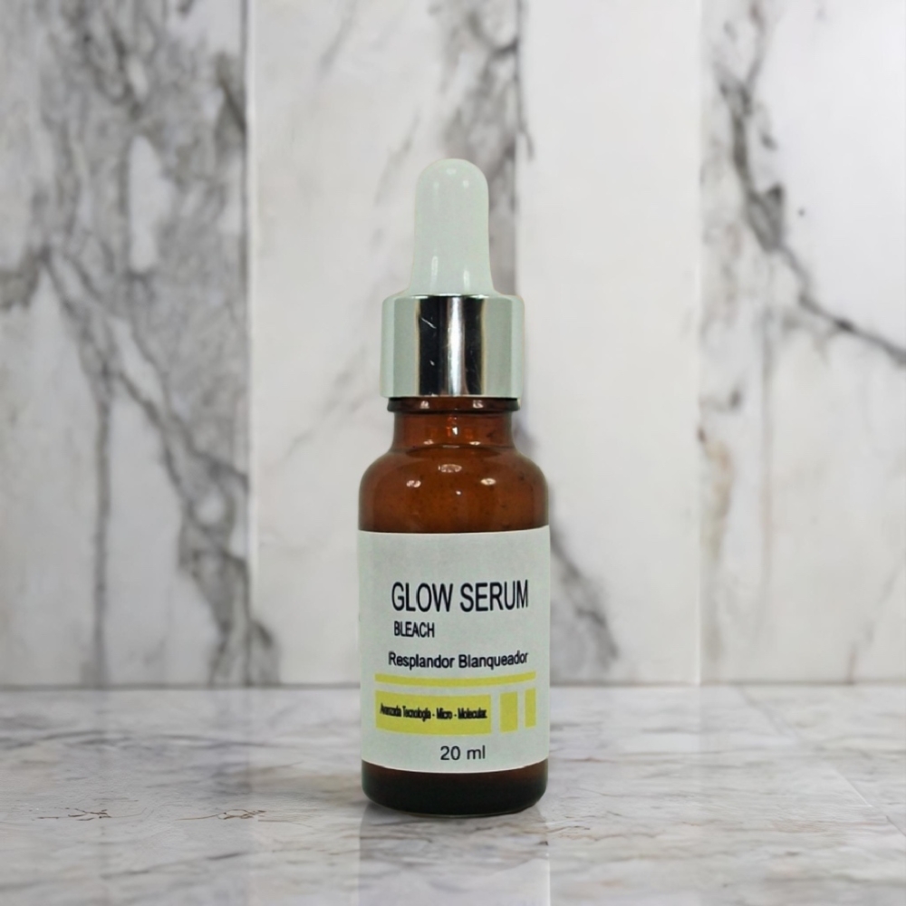 Suero Glow serum Bleach, trabaja en el nivel más profundo, donde nace la mancha, inhibiendo la producción de melanina. La excesiva y prolongada exposición al sol, el envejecimiento cronológico, el embarazo. Las pieles blancas suelen presentar más manchas que las pieles oscuras.