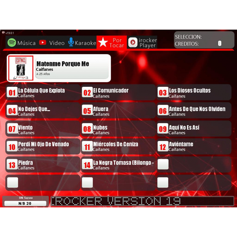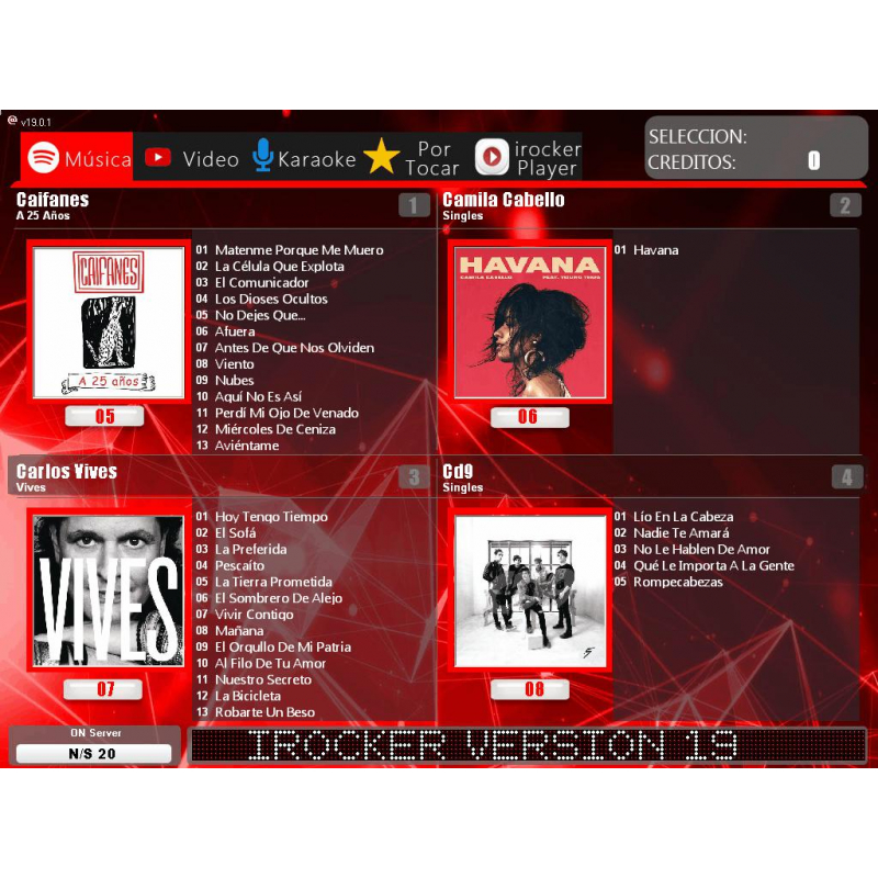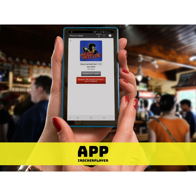 irockerPlayer cuenta con todas las funciones de selección de la rockola: Selección de temas de manera gratuita o por cobro, selección Normal y mi canción primero. Tiene la función exclusiva de buscar por artistas , lo que hace a irockerPlayer la mejor opción del 2019.