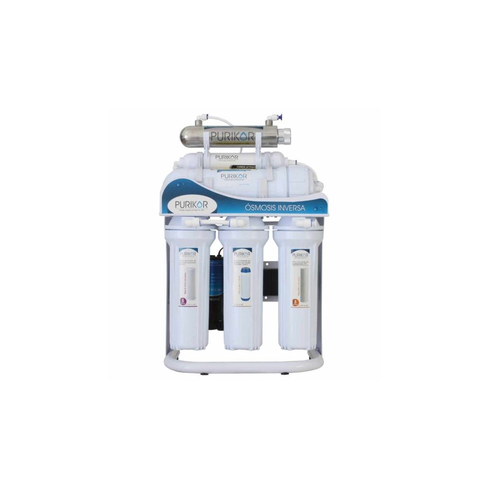 Incluye Bomba de presión, lámpara UV PHILIPS, conexión de agua desecho, conexión para alimentación de agua, llave para portafiltros, portamembrana, mangueras tubing y llave de ganso de lujo.