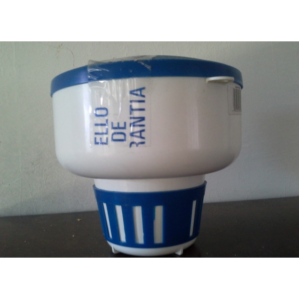 Flotador dosificador de cloro para albercas, con tapa para adicionar cloro en pastillas y seguro para impedir que los niños la abran, cuenta con rejillas ajustables para dosificar la cantidad de cloro adecuada.