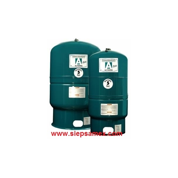 Tanque tipo vertical, pre cargado a 38 libras de aire, descarga de 1 1/4" (32 mm) dimensiones: 26"x47" ( 66 centímetros de circunferencia x 119.5 centímetros de alto ) con un peso de 55.9 kilogramos