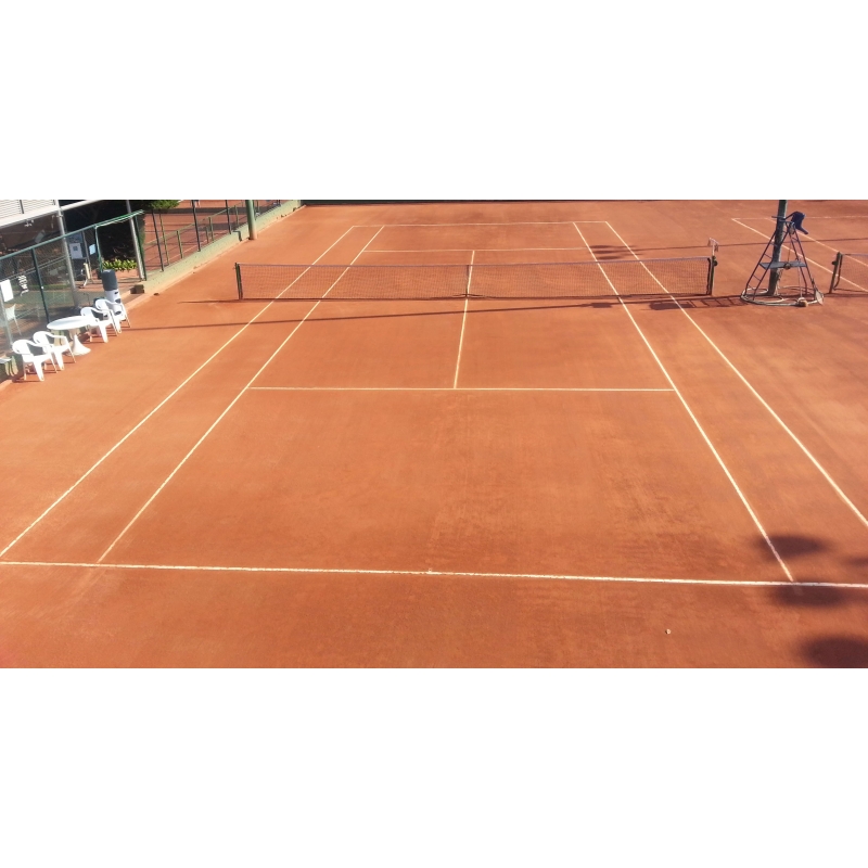 En las canchas de Tenis de superficie sintética se usa un recubrimiento de varias capas. En una cancha de Polvo de Ladrillo se aplica el método tradicional, que permite permeabilidad del agua a través del correspondiente sistema de drenaje.