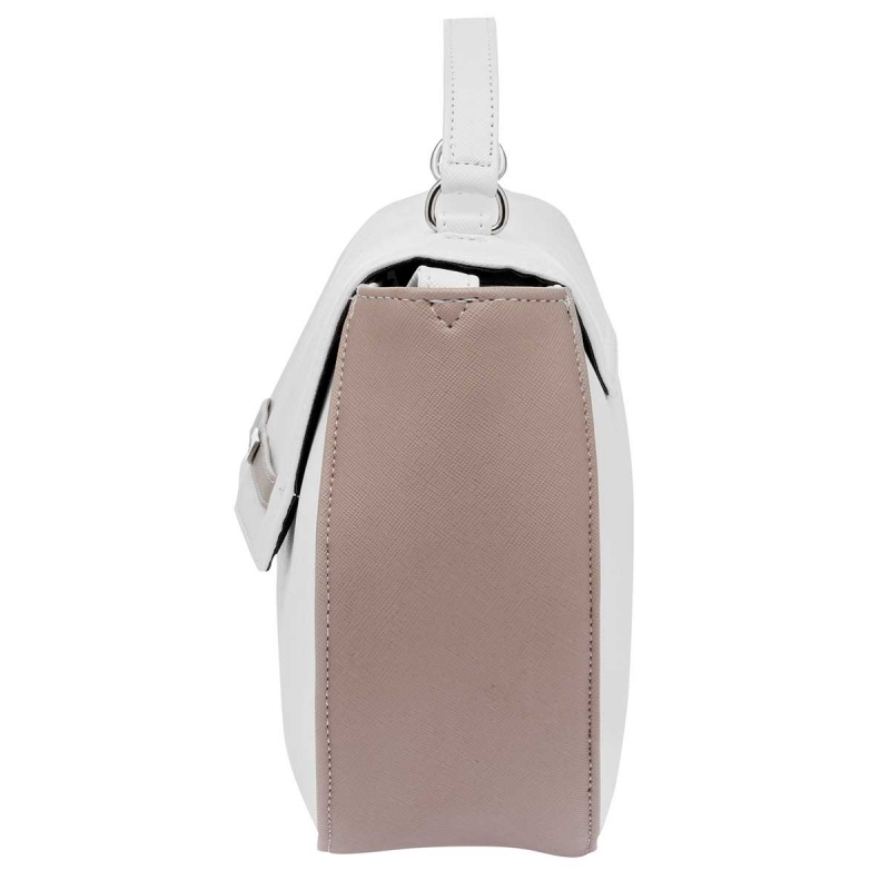 Con buen espacio interior. Cuerpo Rígido pero suave al tacto. Tapa en forma de cubierta. Asa y correa ajustable para llevar al hombro.