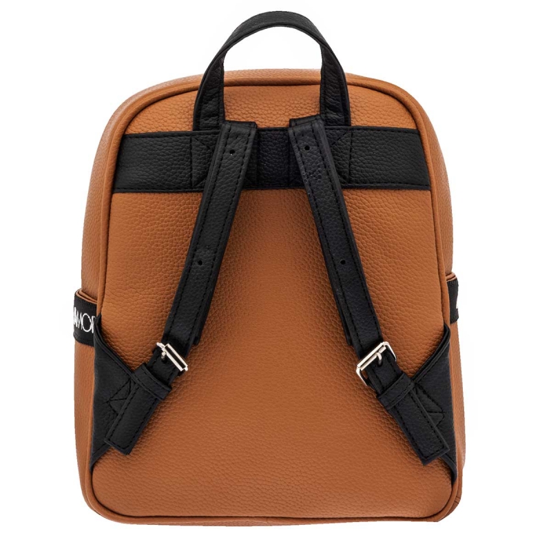 De aspecto rígido pero suave al tacto. Con gran espacio interior. Forro por dentro, con compartimiento. Bolsa frontal con cierre. Asa. Respaldo cómodo y correas ajustables.