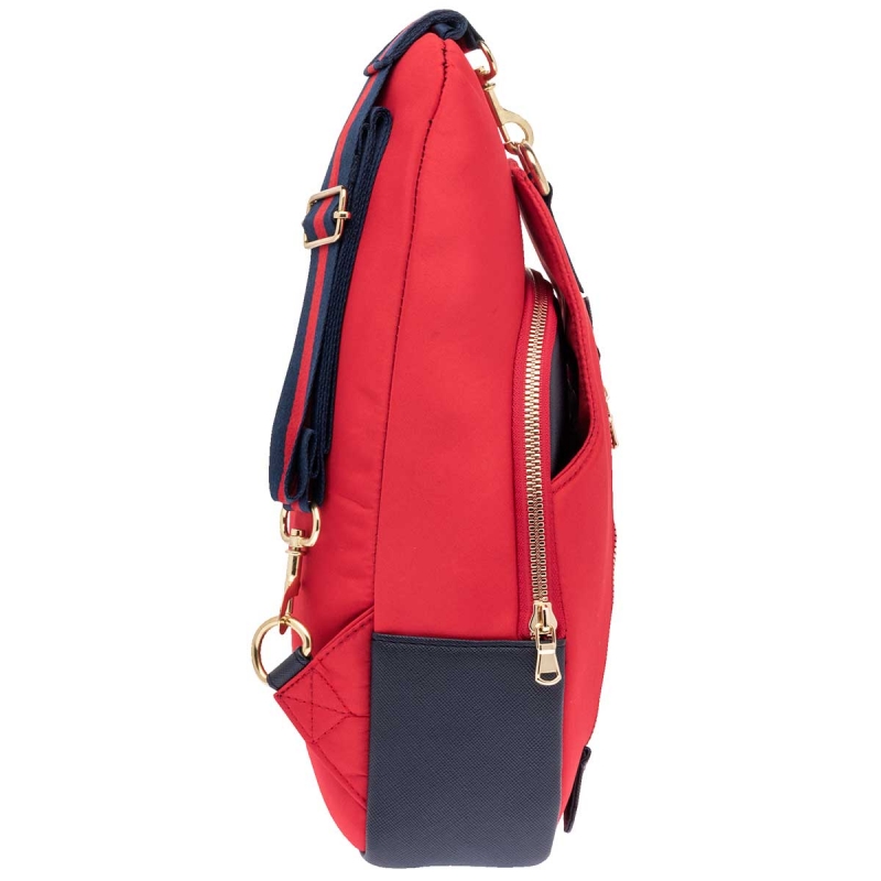 Con corte deportivo. Suave al tacto. Con buen espacio interior. Forro por dentro. Bolsa amplia al frente y cierre cruzado. Tapa tipo cubierta. Respaldo cómodo y correa ajustable. Ideal para salidas Informales o viajes repentinos.