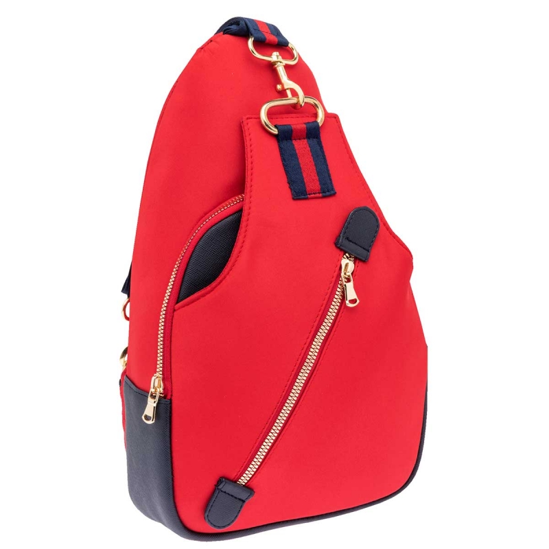 Con corte deportivo. Suave al tacto. Con buen espacio interior. Forro por dentro. Bolsa amplia al frente y cierre cruzado. Tapa tipo cubierta. Respaldo cómodo y correa ajustable. Ideal para salidas Informales o viajes repentinos.